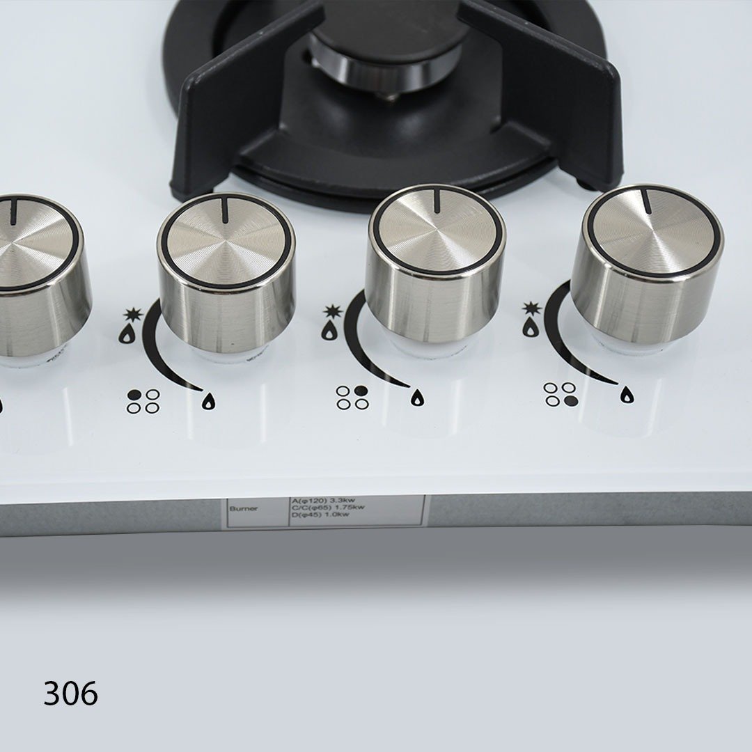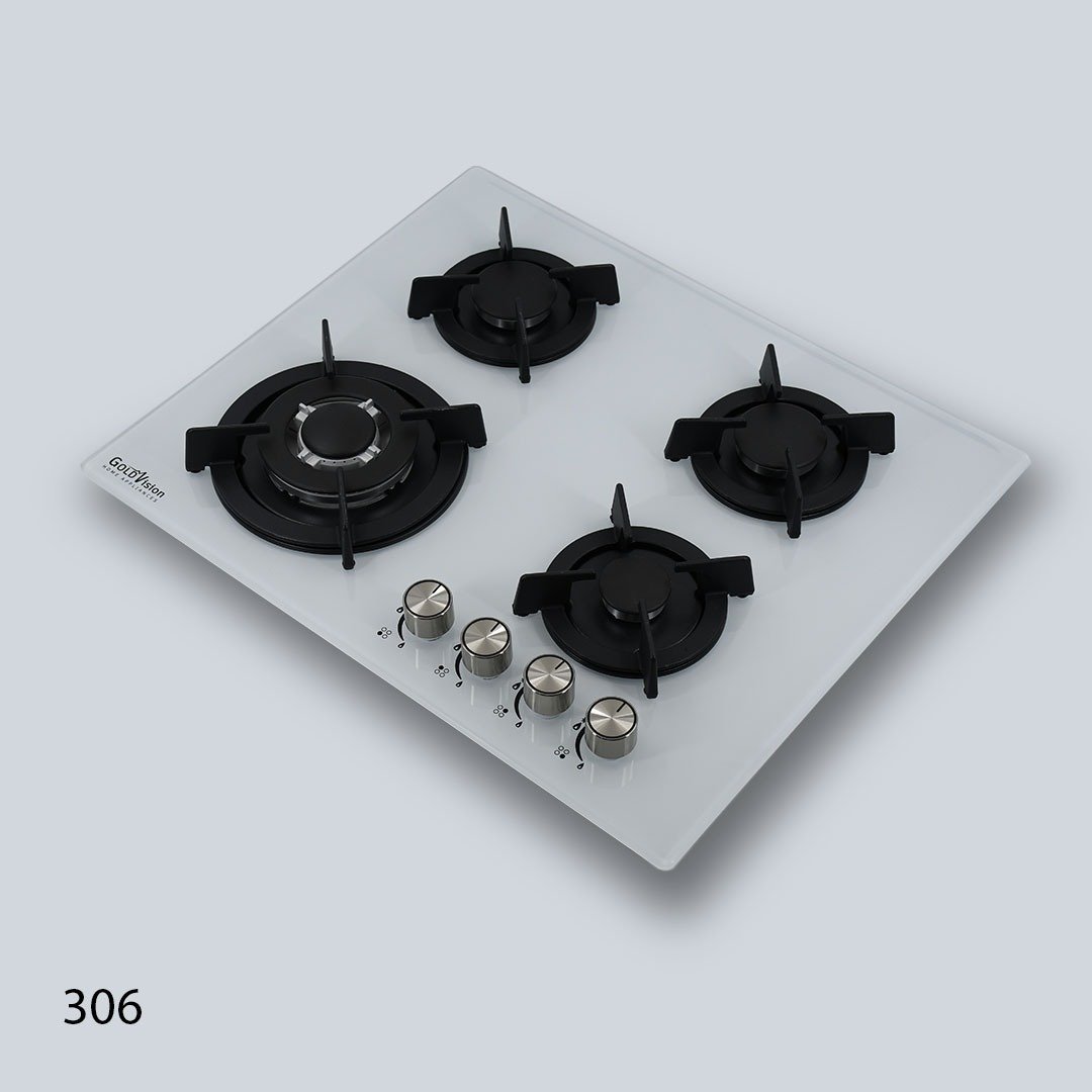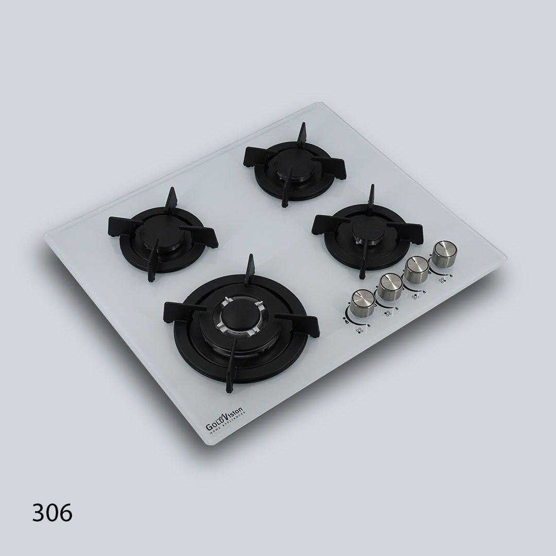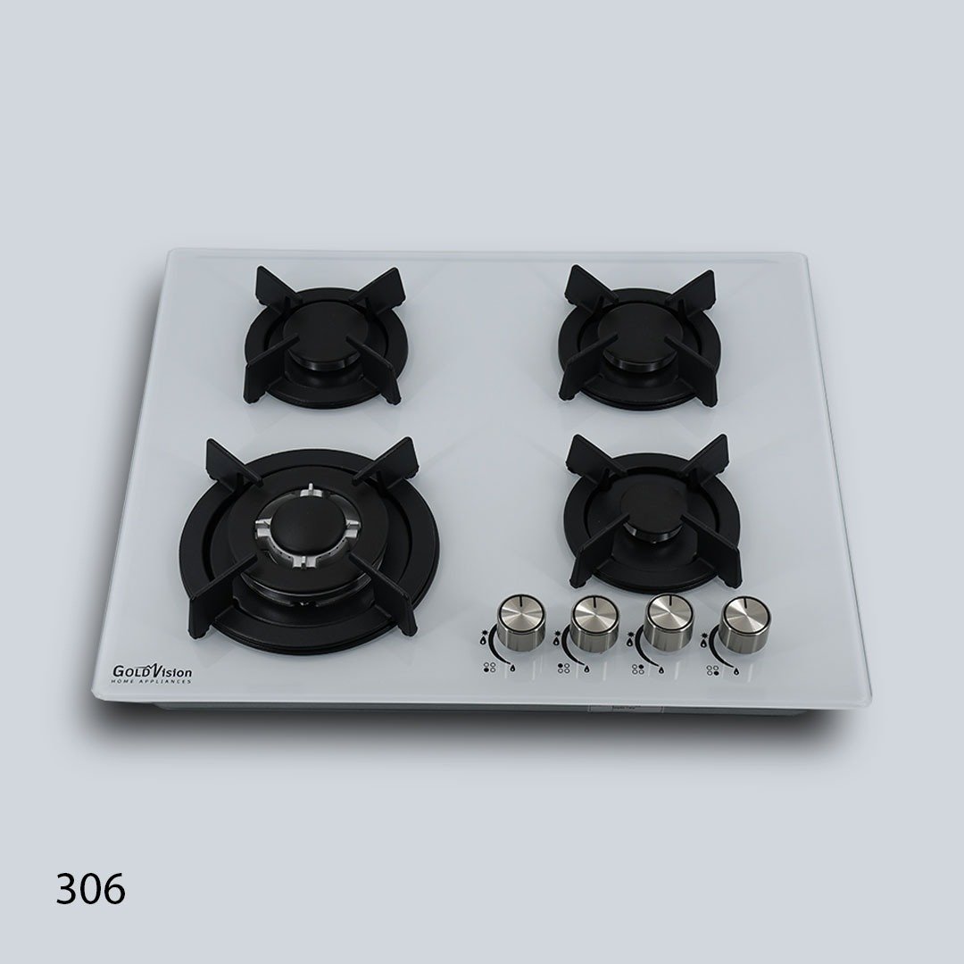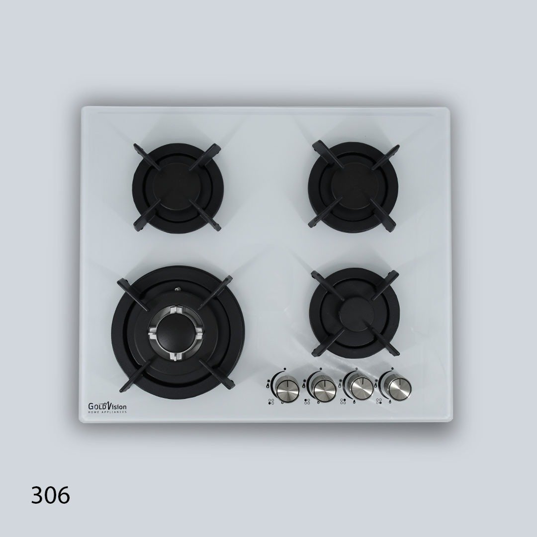 طباخ جولد فيجن 60 سم، 4 مواقد، زجاج أبيض 306