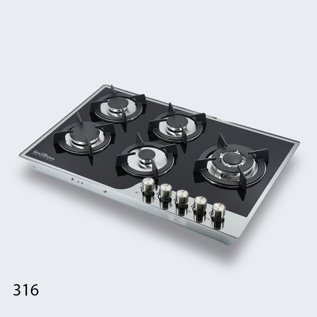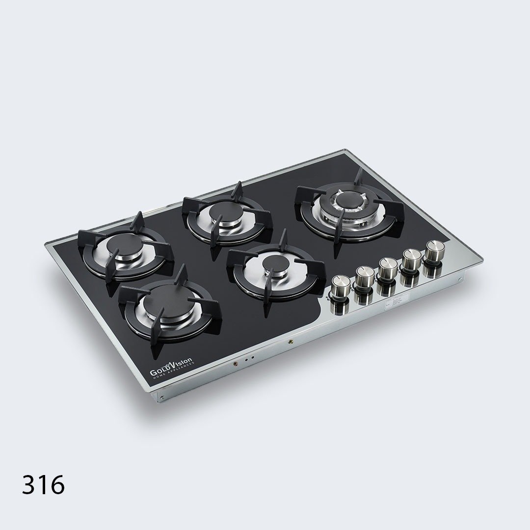 طباخ جولد فيجن 76 سم، 5 مواقد، زجاج اسود 316