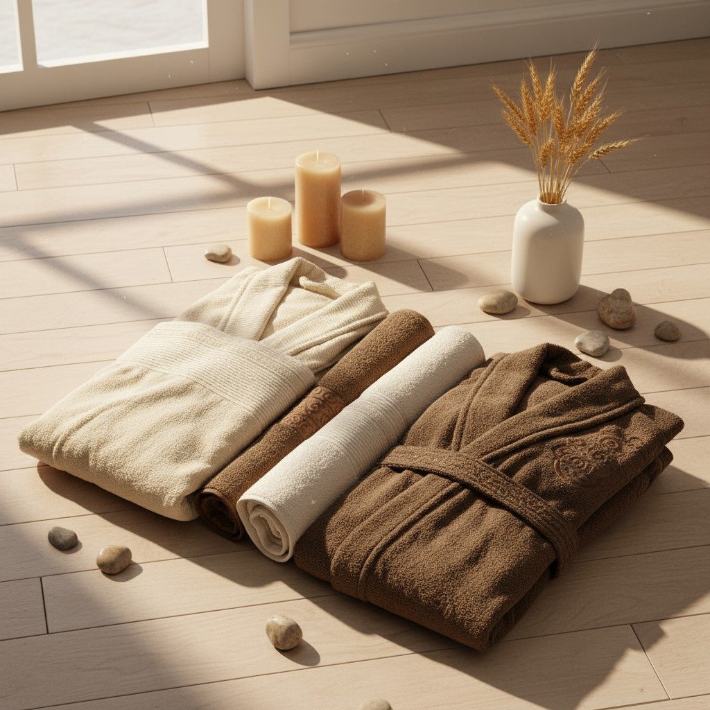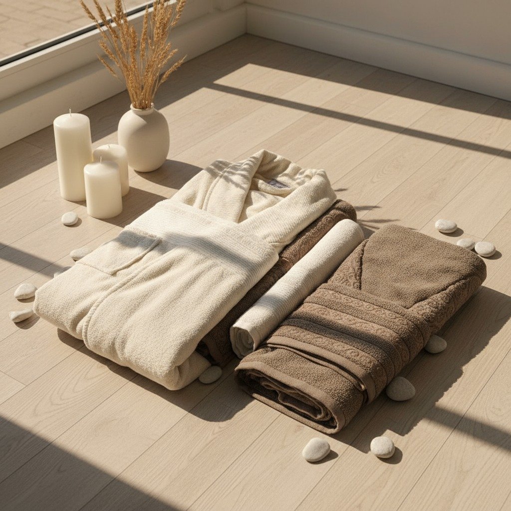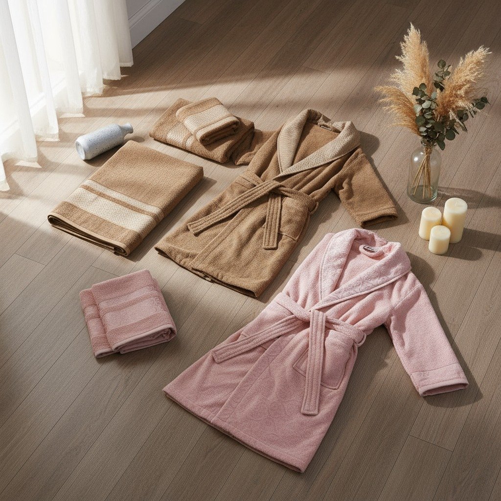 “استرخي بأناقة… برنس ميني مون، لمسة فخامة بعد كل دوش 🛁✨.”