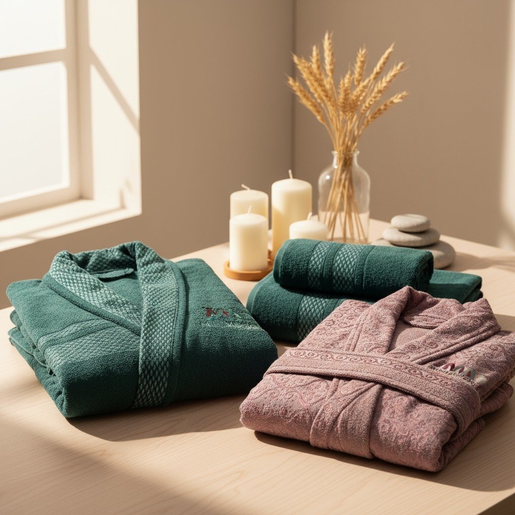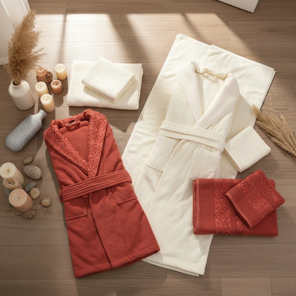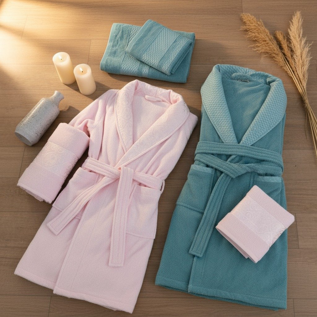 طقم روب حمام 6 قطع قطن مصري ميني مون