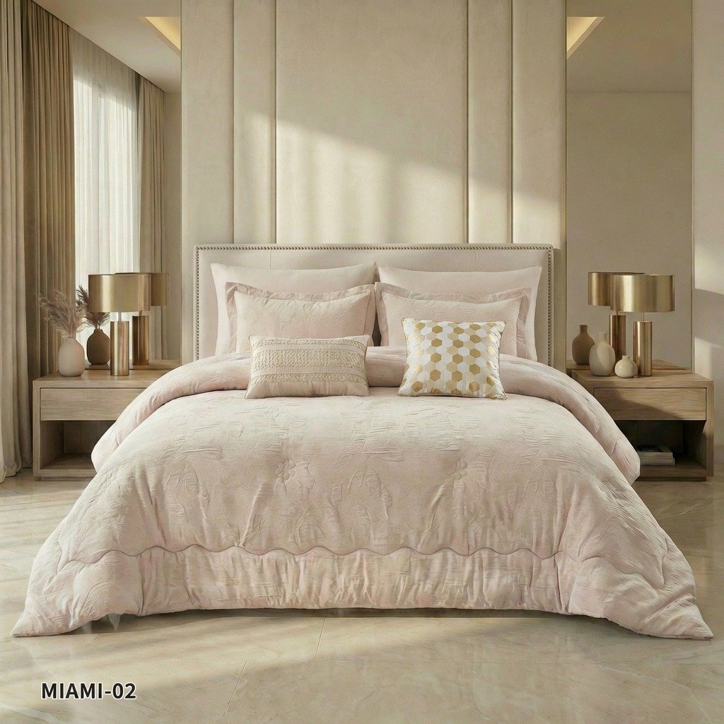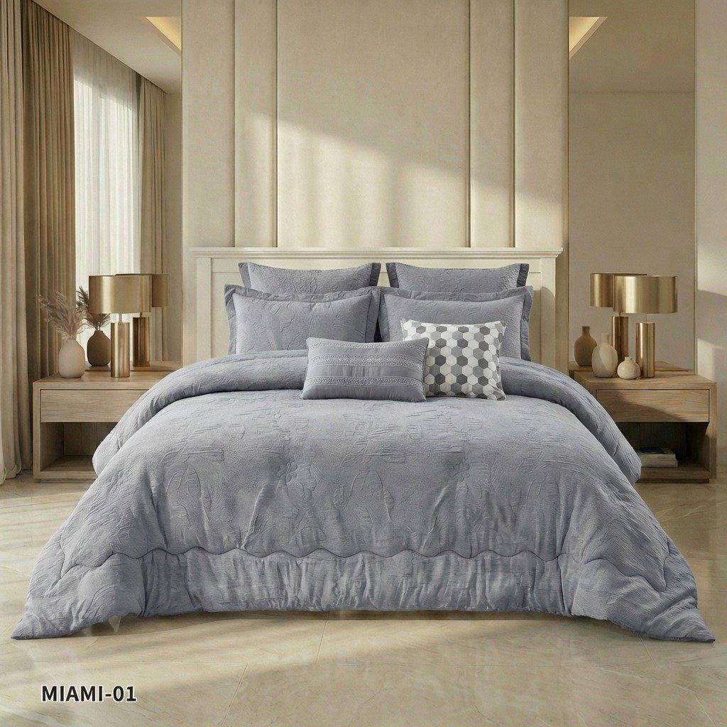 طقم لحاف جاكار وقطن ميامي مزدوج كنج سايز 8 قطع صيفي