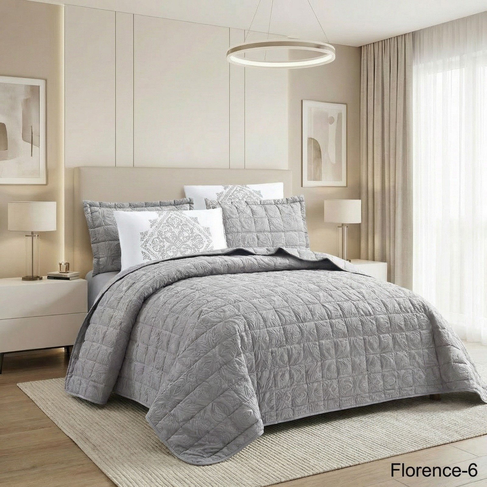 طقم لحاف فلورنس جوبلين مجكر مزدوج كنج سايز 6 قطع صيفي